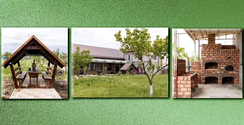 Есть камин, казан, мангальная зона, так что сможете организовать досуг во дворе и приготовить любимые блюда на открытом огне.